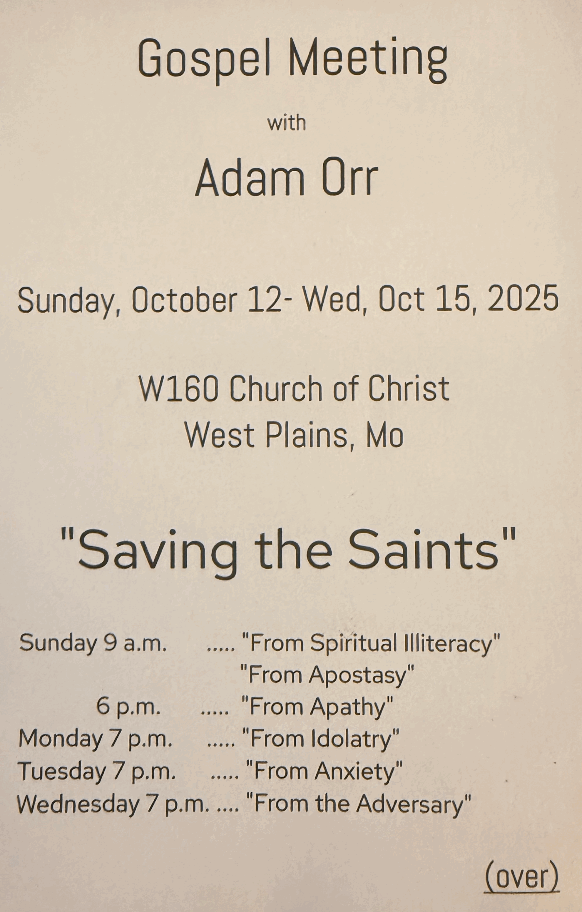 *Flyer on Gospel Meeting tab in Menu*
